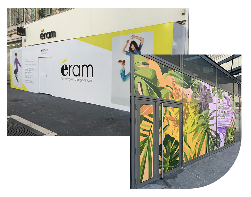 Tout à fait. Nous proposons une prestation clé en main. Une fois les dimensions relevées, notre bureau d'étude peut travailler avec vos fichiers graphiques ou créer une identité visuelle sur mesure. Que ce soit via de l'adhésif haute durabilité ou de la bâche tendue sur structure, nous assurons une impression haute définition. C'est l'occasion idéale pour annoncer l'ouverture prochaine d'une enseigne ("Teasing") ou pour afficher une communication institutionnelle du centre pendant la durée des travaux.