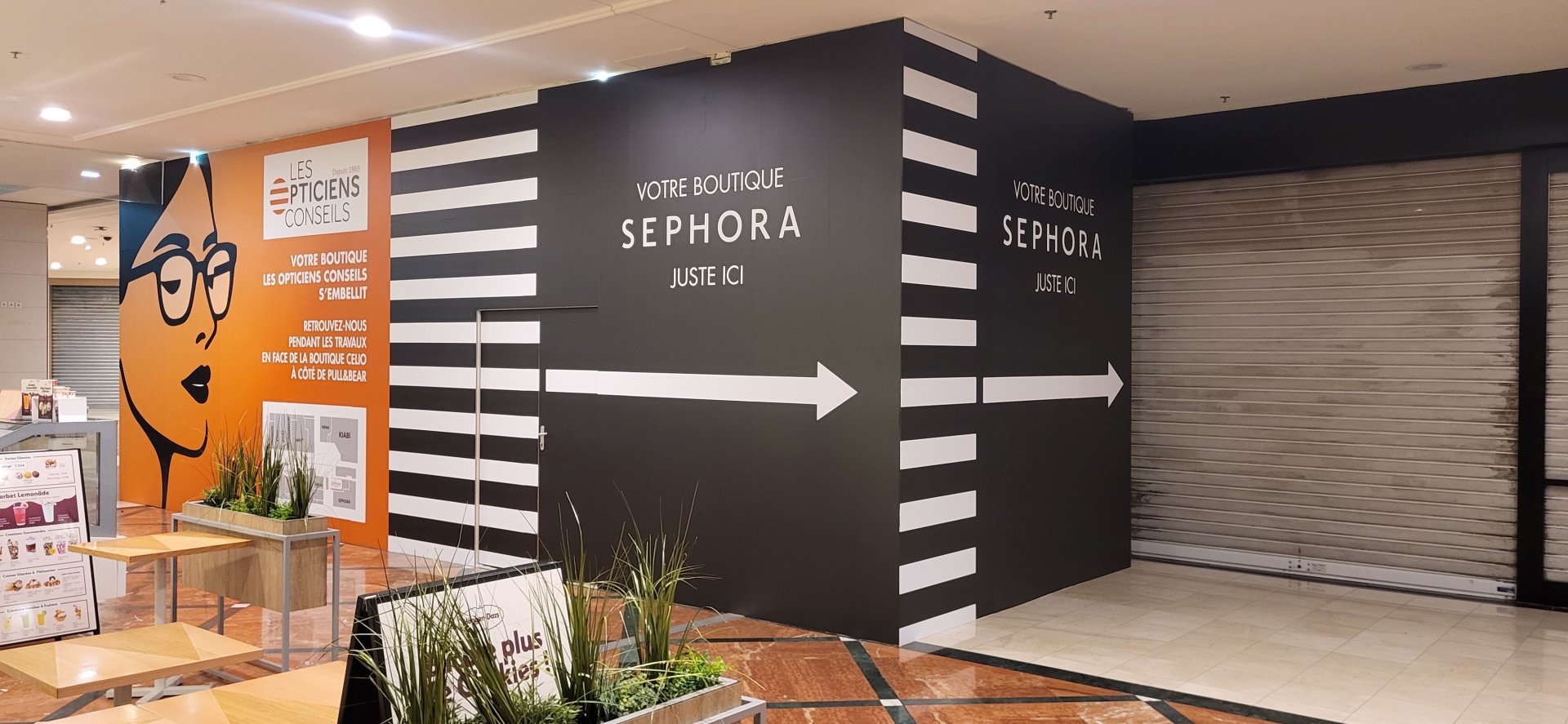 Installation de nuit ou tôt le matin pour garantir zéro nuisance à l'ouverture.